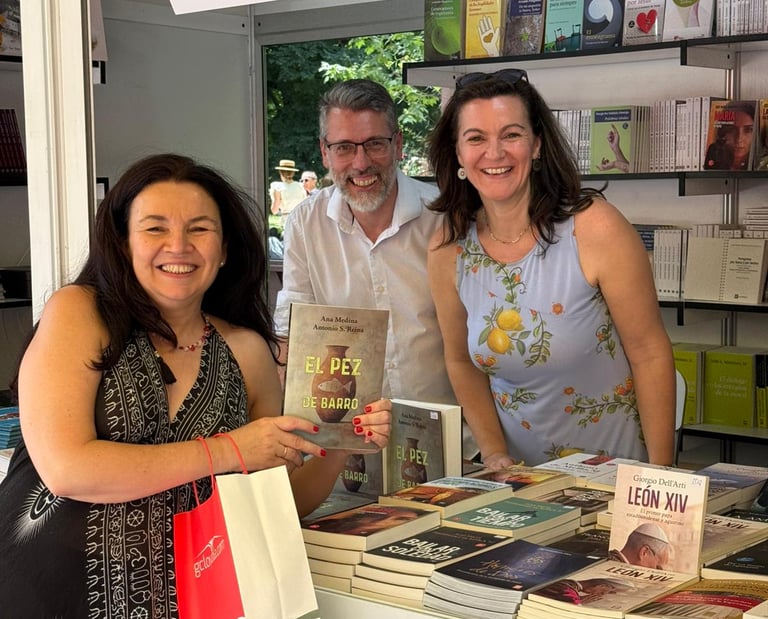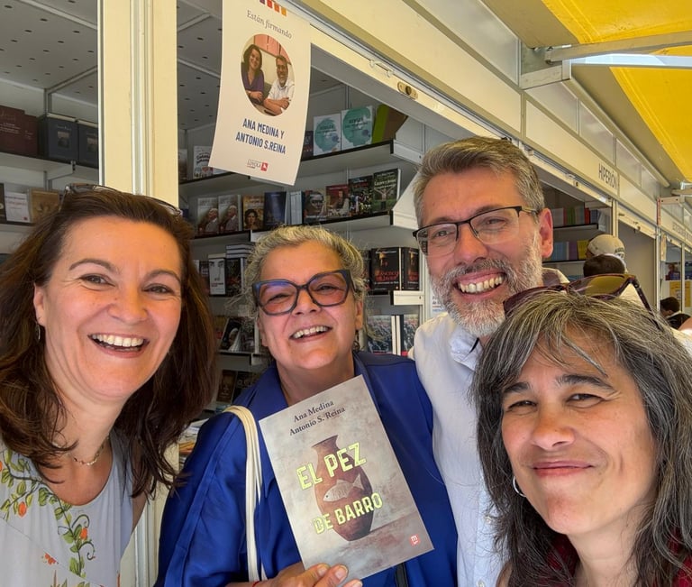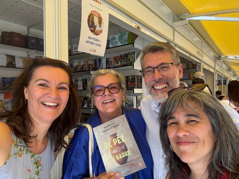 Visita relámpago a la Feria del libro de Madrid celebrada en el Parque del Buen Retiro. Nos topamos con el calor meteorológico y, especialmente, con el calor de los lectores. Estábamos deseando encontrarnos cara a cara y poder firmarles un ejemplar de la novela y compartir algunos pasajes de la misma a quienes ya han comenzado a leérsela.